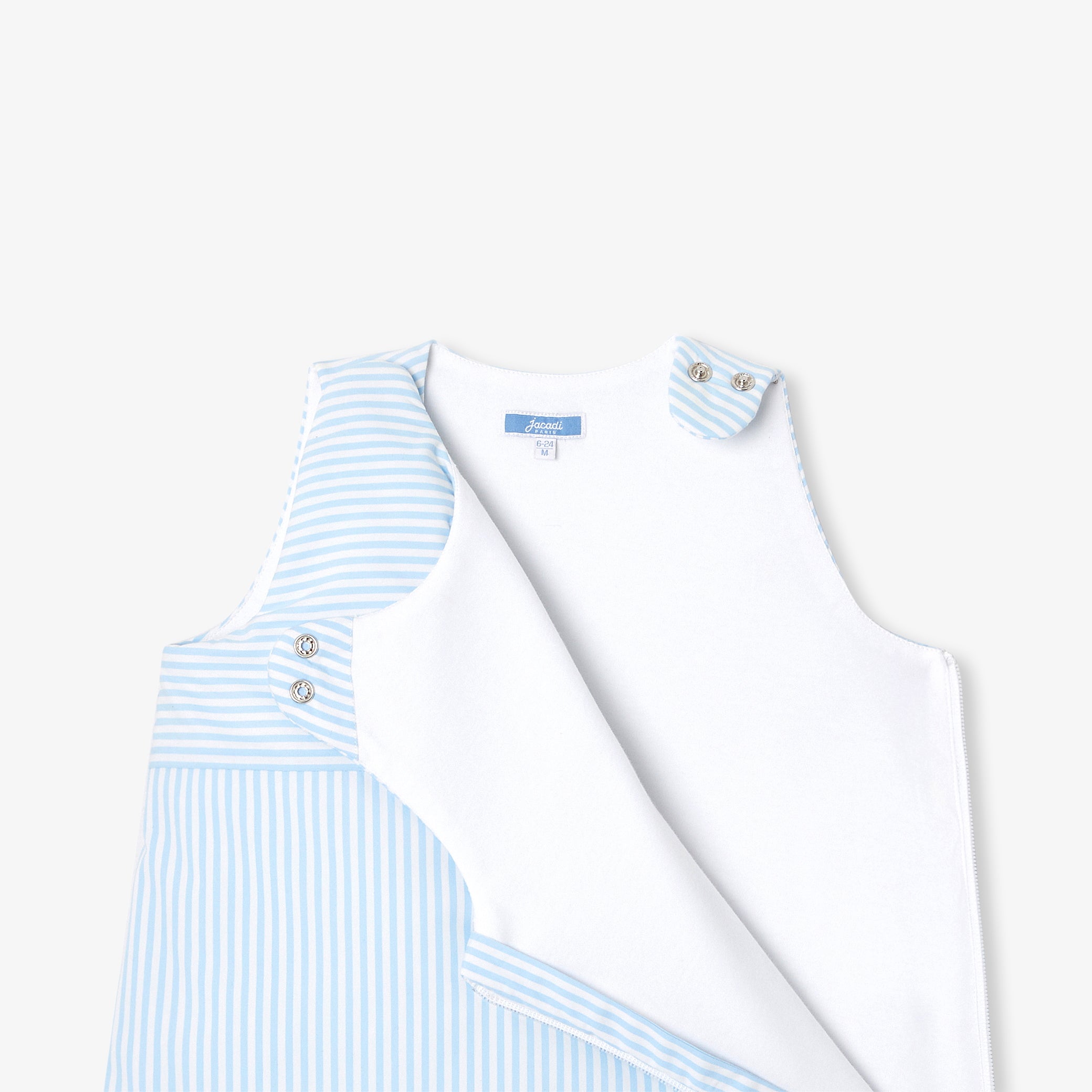 このモデルは、背面のボタンで着丈を調整できるデザイン。生後6ヶ月からのお昼寝や夜の眠りに寄り添い、お子様の成長に合わせて長く大切にお使いいただけます。