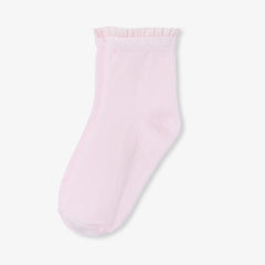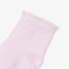 今シーズンは、上質なコットンに繊細なポプリンのフリルをあしらったクラシカルなソックスが登場。足首の柔らかなストレッチリボンにより、エレガントで快適な履き心地を実現。ベロア調生地のショートパンツからフォーマルワンピースまで、あらゆる装いが上品に。