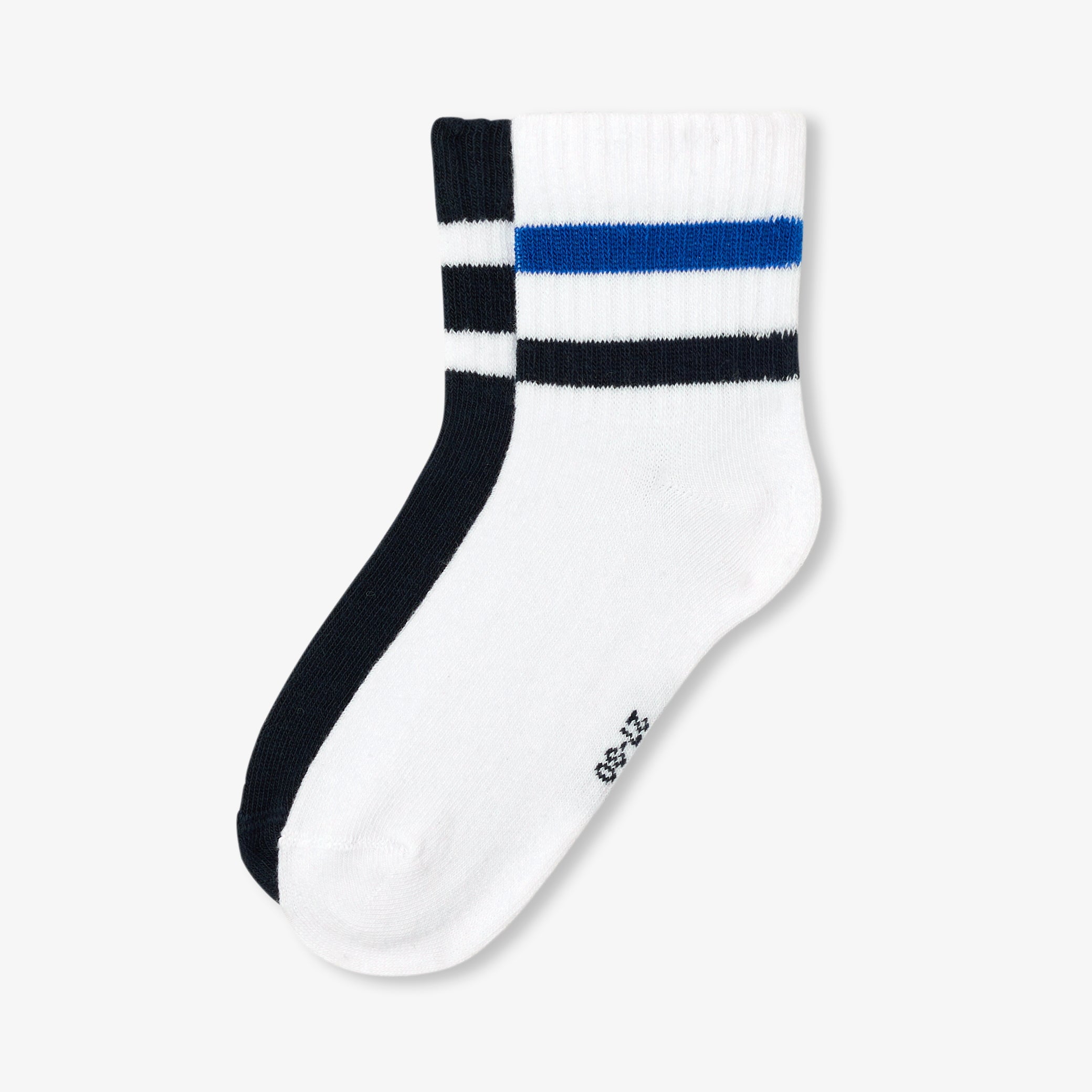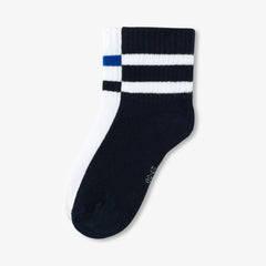 テニス靴下風の短めのストライプがおしゃれな靴下2足セット。柔らかで伸縮性のあるニット素材で、履きやすいアイテムです。