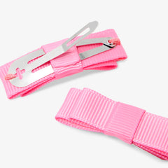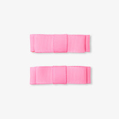 ピンクのグログランリボンのクリップ式ヘアクリップ。細い髪もしっかり留められます。