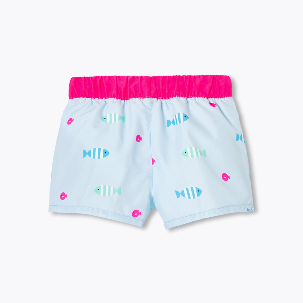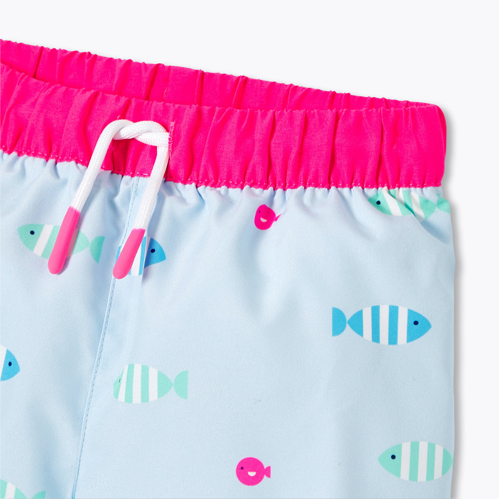 鮮やかなカラーの魚やストライプ柄のイワシのモチーフが、水遊びの装いに遊び心をプラス。シーンに合わせて使い分けたいアイテムです。