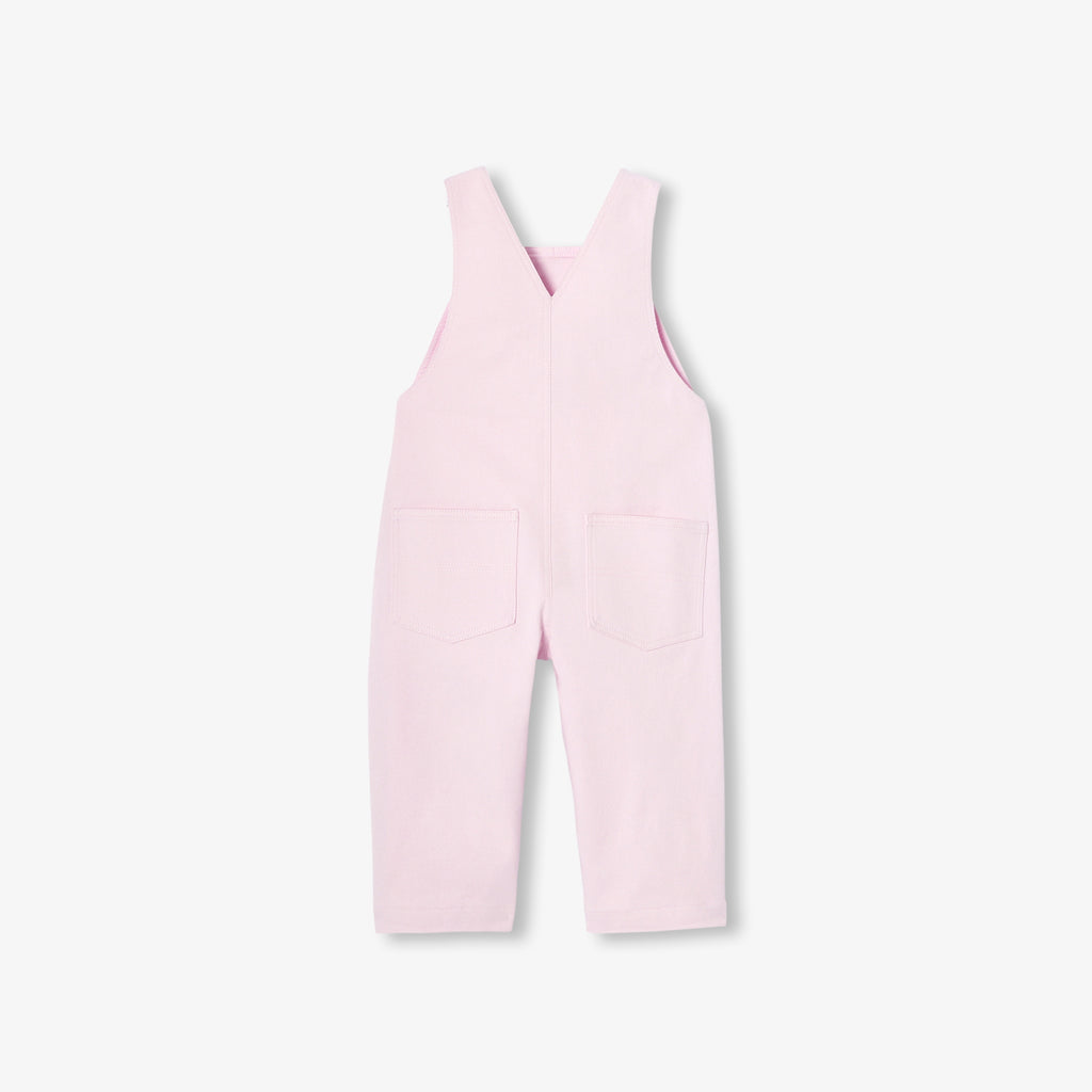 パッチポケットをあしらったワークウェア風のデザイン。カジュアルシックで都会的なサロペットです。柔らかく快適なツイル素材を使用し、やさしいパステルカラーに仕上げました。保育園や家族でのお出かけにも活躍します。ボーダートップスやキルティングのリバティプリント(花柄)ジャケットと合わせれば、洗練された着回しが楽しめます。