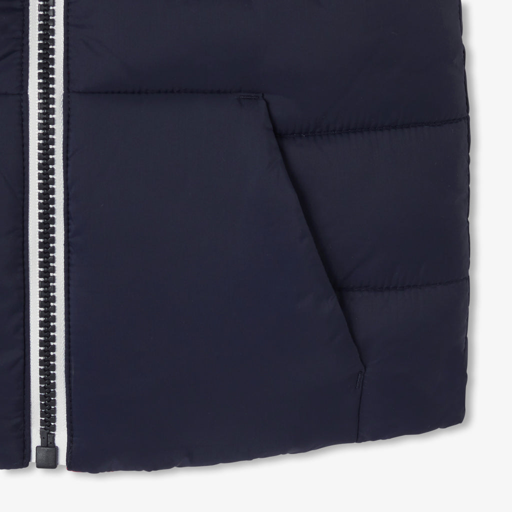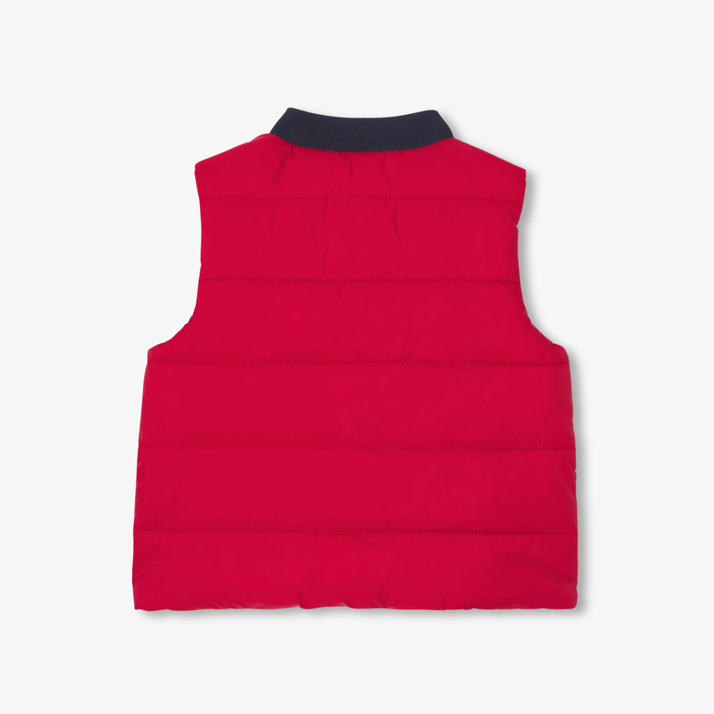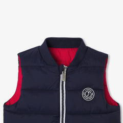着回しやすさとアイデアが光る、シーズン初めに活躍するリバーシブル仕様のベスト。テディカラー(襟)と胸元の刺?バッジがプレッピーでスポーティーな印象を演出。ネイビーとレッド、2つの表情を楽しめるリバーシブル仕様なので、スウェットやセーターの上に重ねれば、デイリースタイルの印象が変わります。