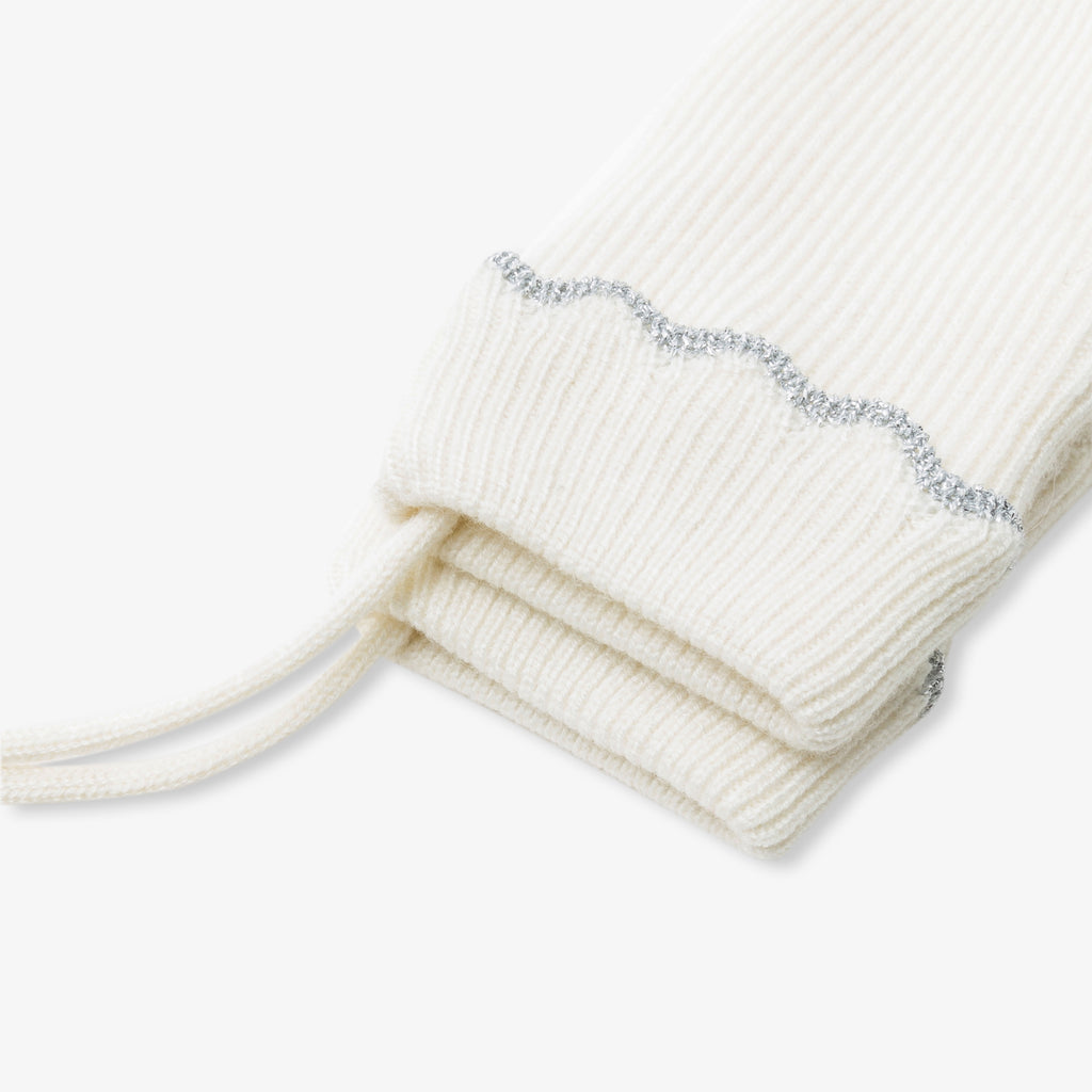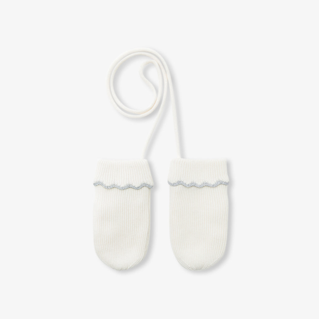 今シーズンのミトンは、美しいスカラップの折り返しが魅力。ソフトでカバー力も抜群です。お揃いの帽子(別売り)と合わせれば、寒さを防ぐシックなシルエットが完成します。