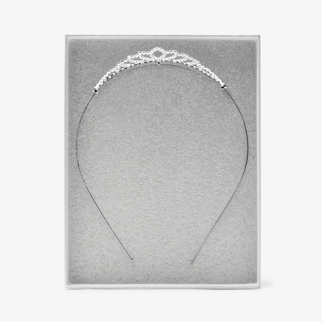 フォーマルな日のヘアスタイルを華やかにしてくれる、シルバーのラインストーンティアラ。お祝いや年末年始など、特別な日にふさわしいお団子や編み込みハーフテールを華やかに彩ります。小さなお子さまを引き立てる、ジュエリーのようなアイテムです。