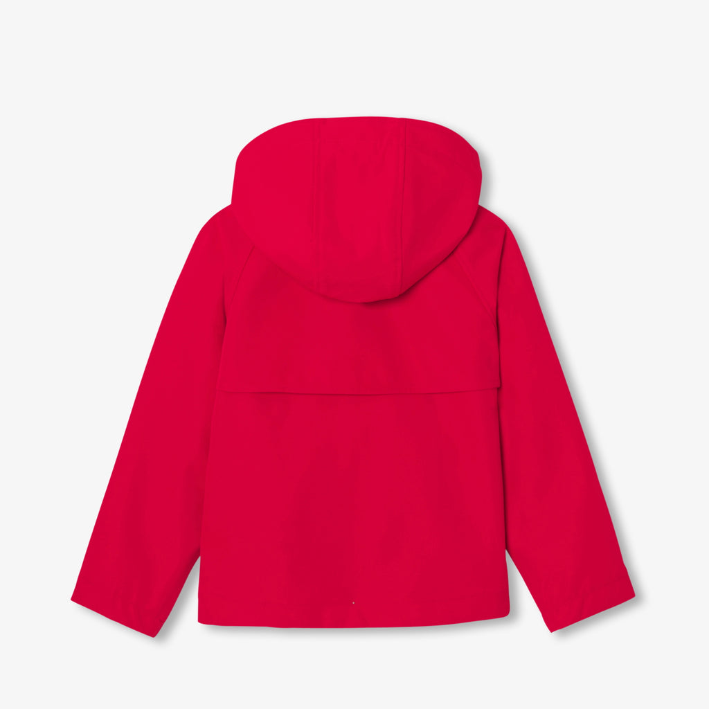 季節の始まりにぴったりな軽い生地を使用した、モダンなクロップド丈です。取り外し可能なフード、ピーターパンカラー(襟)、同系色のスナップボタンを備えた、裏地なしのスタイル。