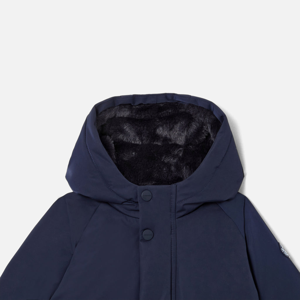 モダンでエレガントなスタイルのコート。撥水加工を施し、裏地にはフェイクファー、中綿にはRDS認証ダウンを使用しています。シックでタイムレスな色合いが秋のワードローブにぴったりです。街中でも、ご家族での旅行でも、お子さまを暖かく守ります。