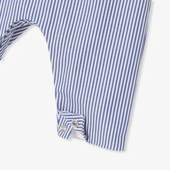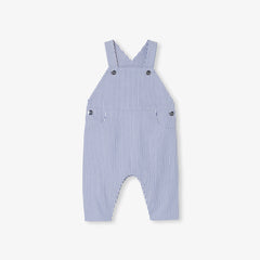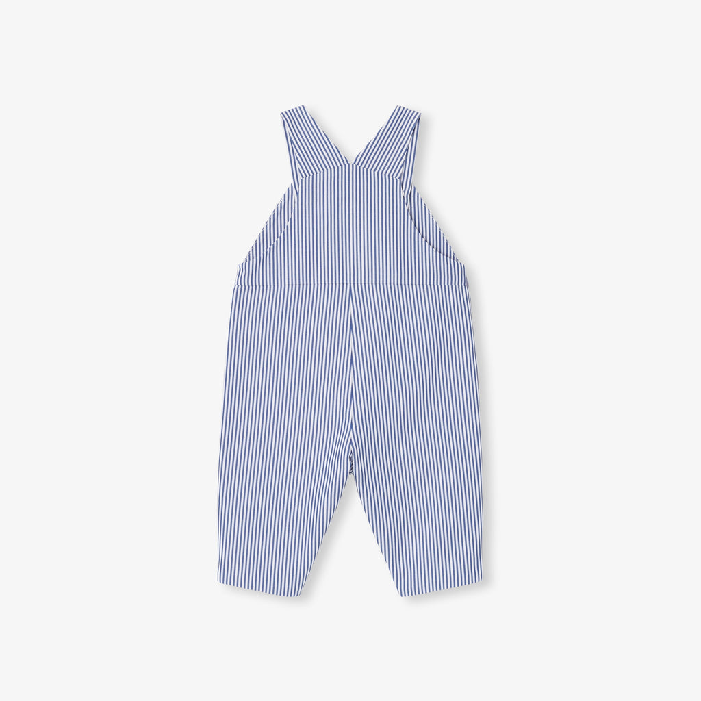 赤ちゃんのためにデザインされた、ワードローブの定番のサロペット。季節初めにぴったりで、ストライプのツイルにニットの裏地を施した、着心地の良い実用的なモデルです。目立ちにくいスナップボタンで開閉でき、無地のボディスーツと赤のジャージーカーディガンを合わせれば、モダンなパリらしいルックが完成します。