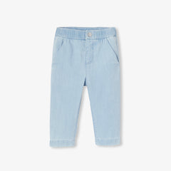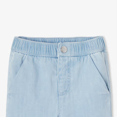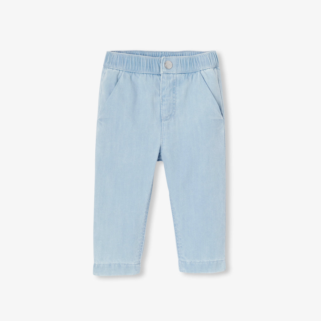 新シーズンのワードローブに欠かせないジーンズは、軽いデニム生地とウォッシュド加工がモダンです。伸縮性のあるウエストゴムとスナップボタン開閉で履き心地もよく、着脱も簡単。夏の終わりにはTシャツとジップアップのスウェットに合わせて、都会風に。