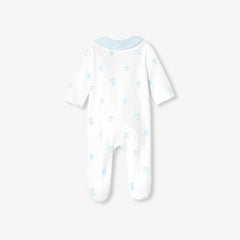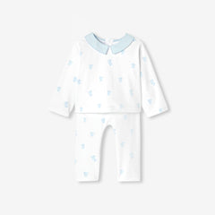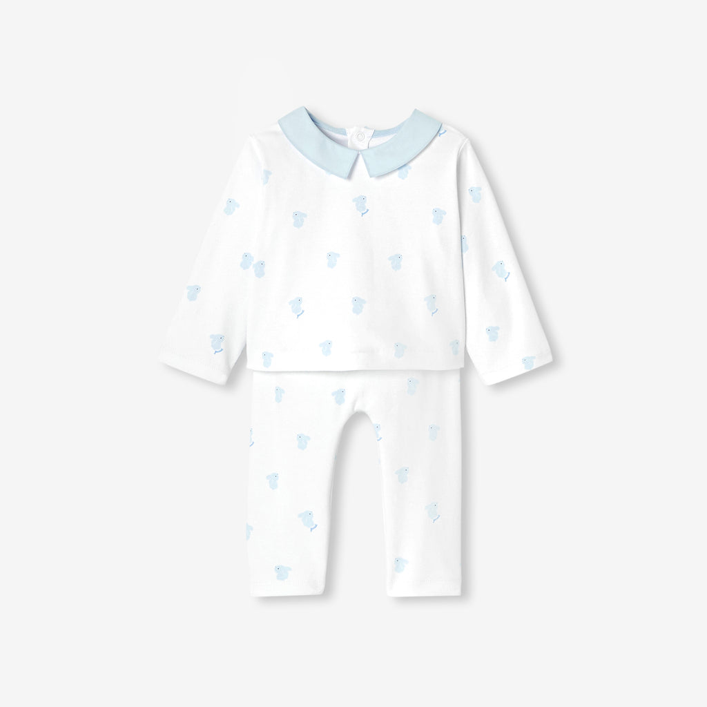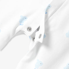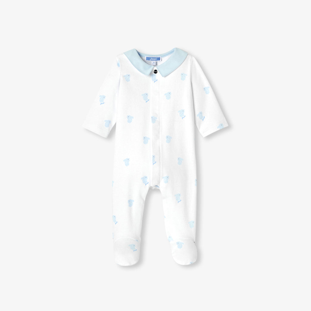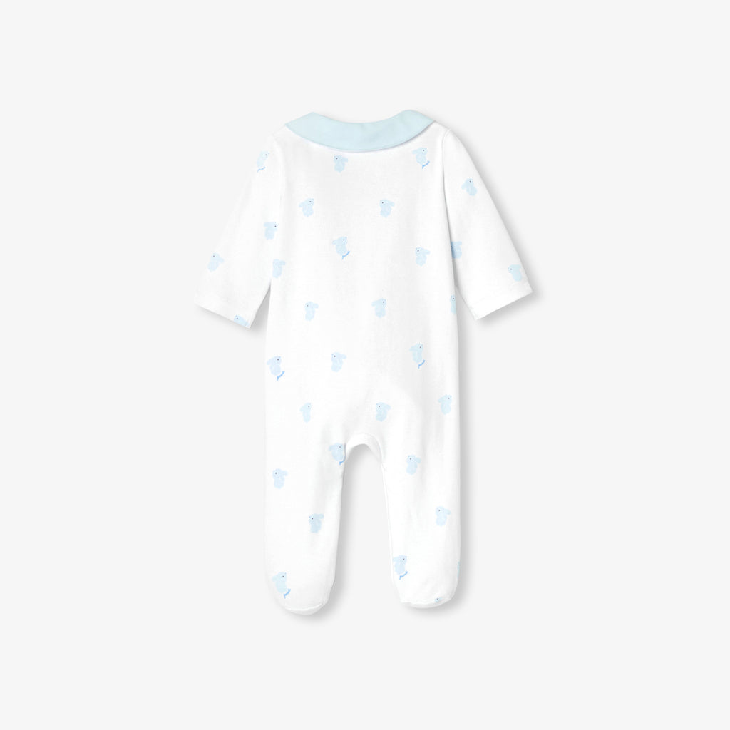 生まれたその瞬間から赤ちゃんをやさしく包み込む、インターロック素材のパジャマです。愛らしいうさぎ柄が、上品でやさしい表情を添えます。