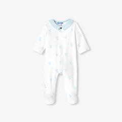 ポプリン襟をあしらい、目立ちにくい前開き仕様で着せ替えもスムーズ。生まれたての赤ちゃんのワードローブに揃えておきたい定番アイテム。18M以降は足なしのセパレート仕様で展開しています。