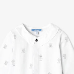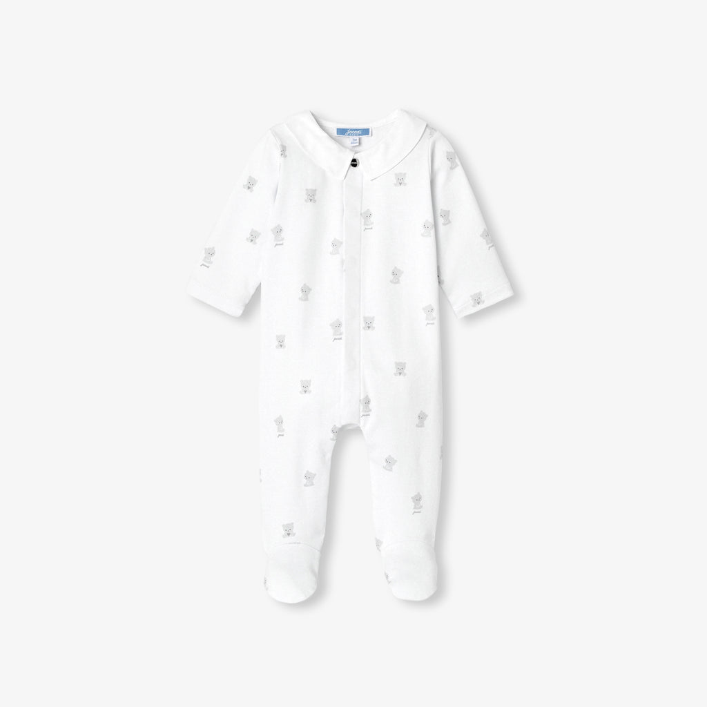ポプリン襟をあしらい、目立ちにくい前開き仕様で着せ替えもスムーズ。生まれたての赤ちゃんのワードローブに揃えておきたい定番アイテム。18M以降は足なしのセパレート仕様で展開しています。