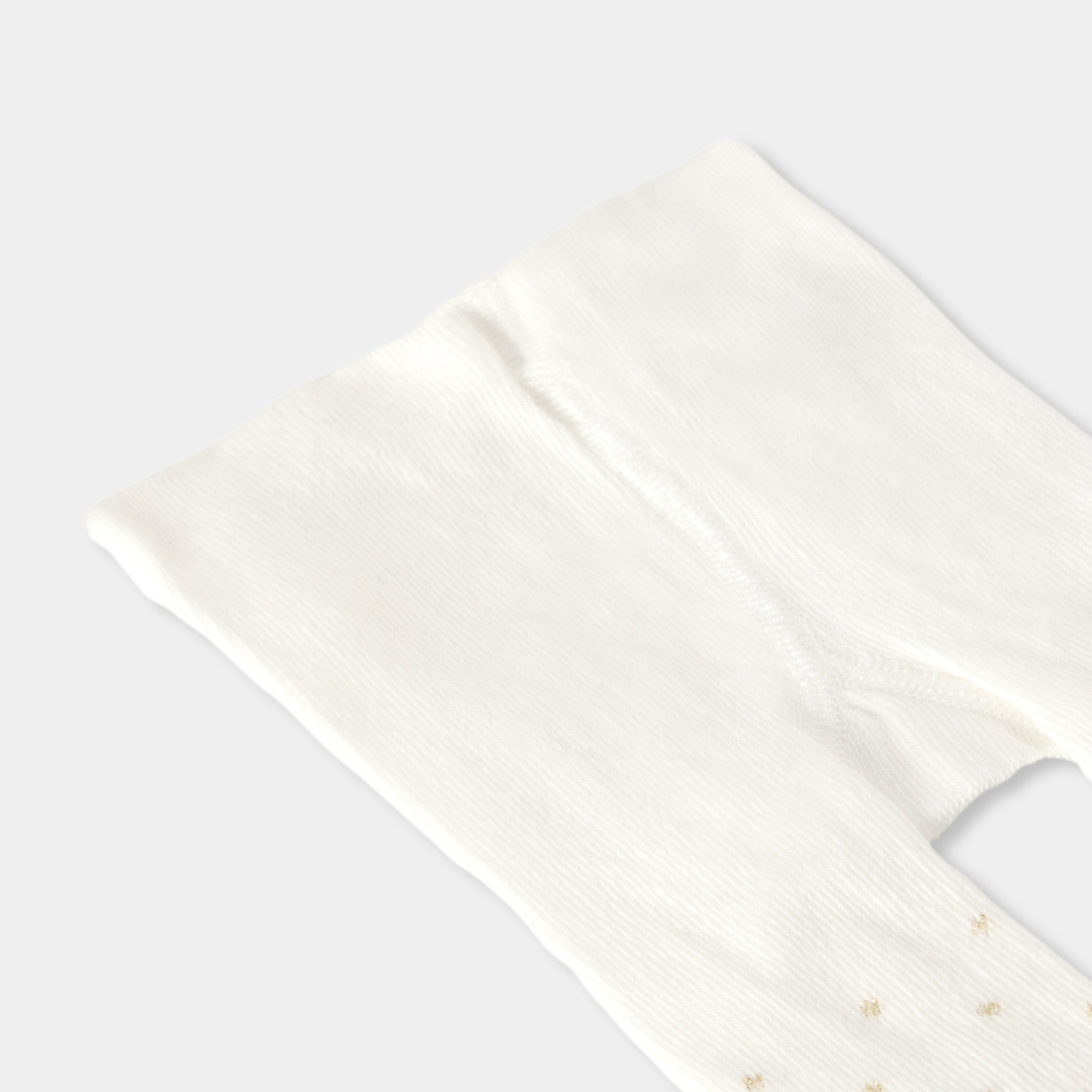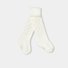 小さなゴールドドット(水玉模様)が印象的なタイツ。日常のシルエットやホリデーの装いにさりげない輝きを添えてくれます。柔らかで履きやすく、赤ちゃんのワードローブにおすすめです。