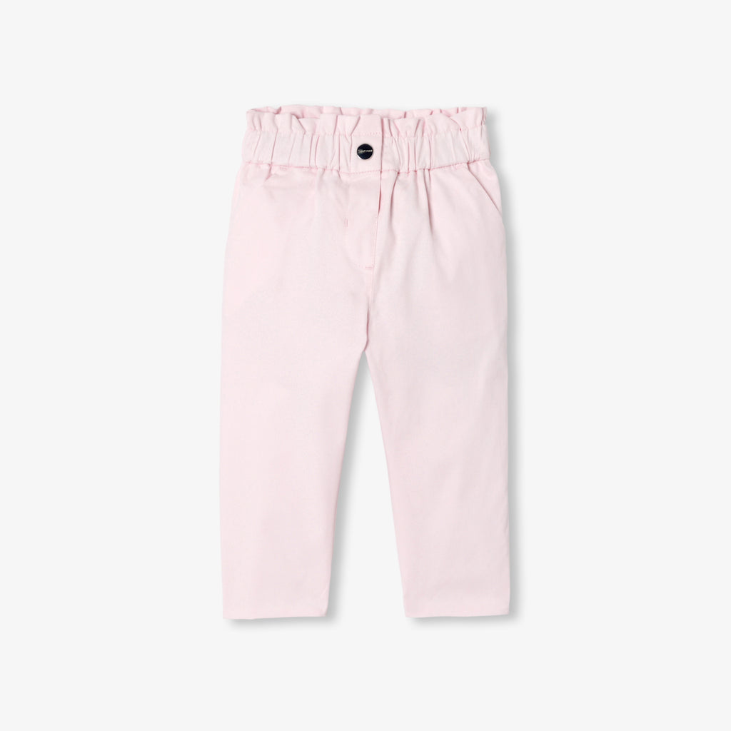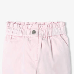 ギャザーを寄せたペーパーバッグウエストに、緩やかなテーパードシルエットのパンツ。春に映える、エレガントで柔らかなコットンサテン素材を使用しています。