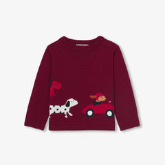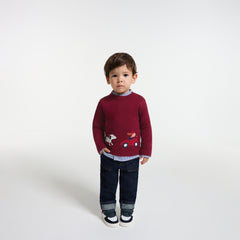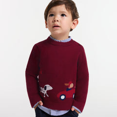 クラシックカーが大好きなお子さまに捧げる、コットンとウールのセーター。遊び心溢れるインターシャ織を施しました。季節感のある色合いとソフトで暖かみのあるニットが秋の装いを温かく彩ります。