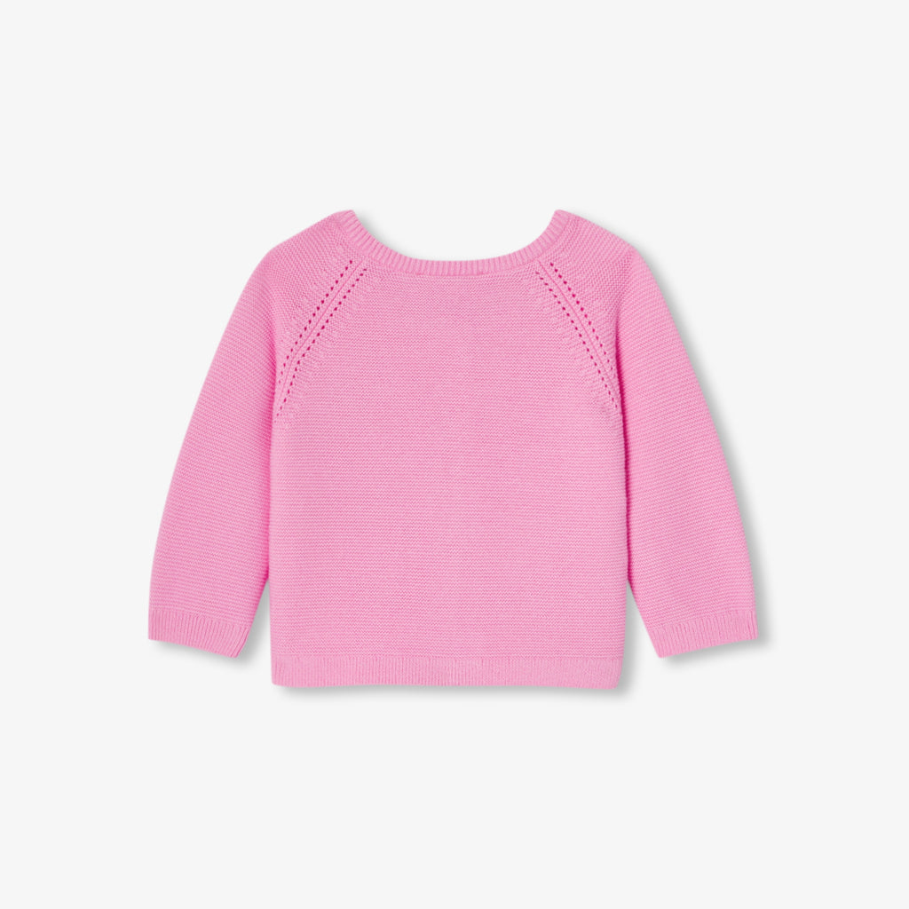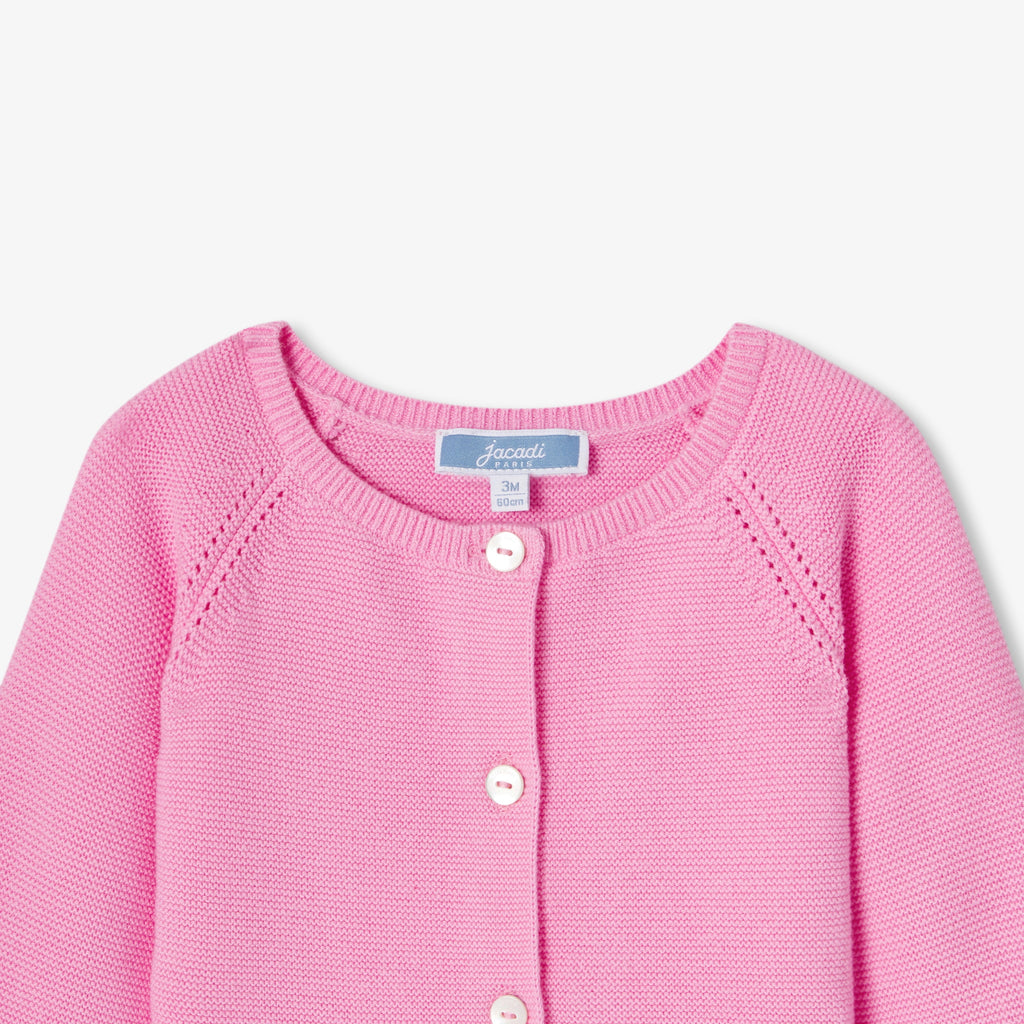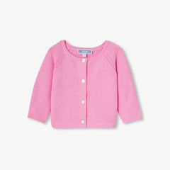 オーガニックコットンの柔らかな風合いと着回しやすさが魅力の、シーズン初めに揃えておきたいカーディガン。上品なガーター編みが特徴です。ラグラン袖とボタンをあしらった、やさしく暖かく包み込む着心地の一着です。
