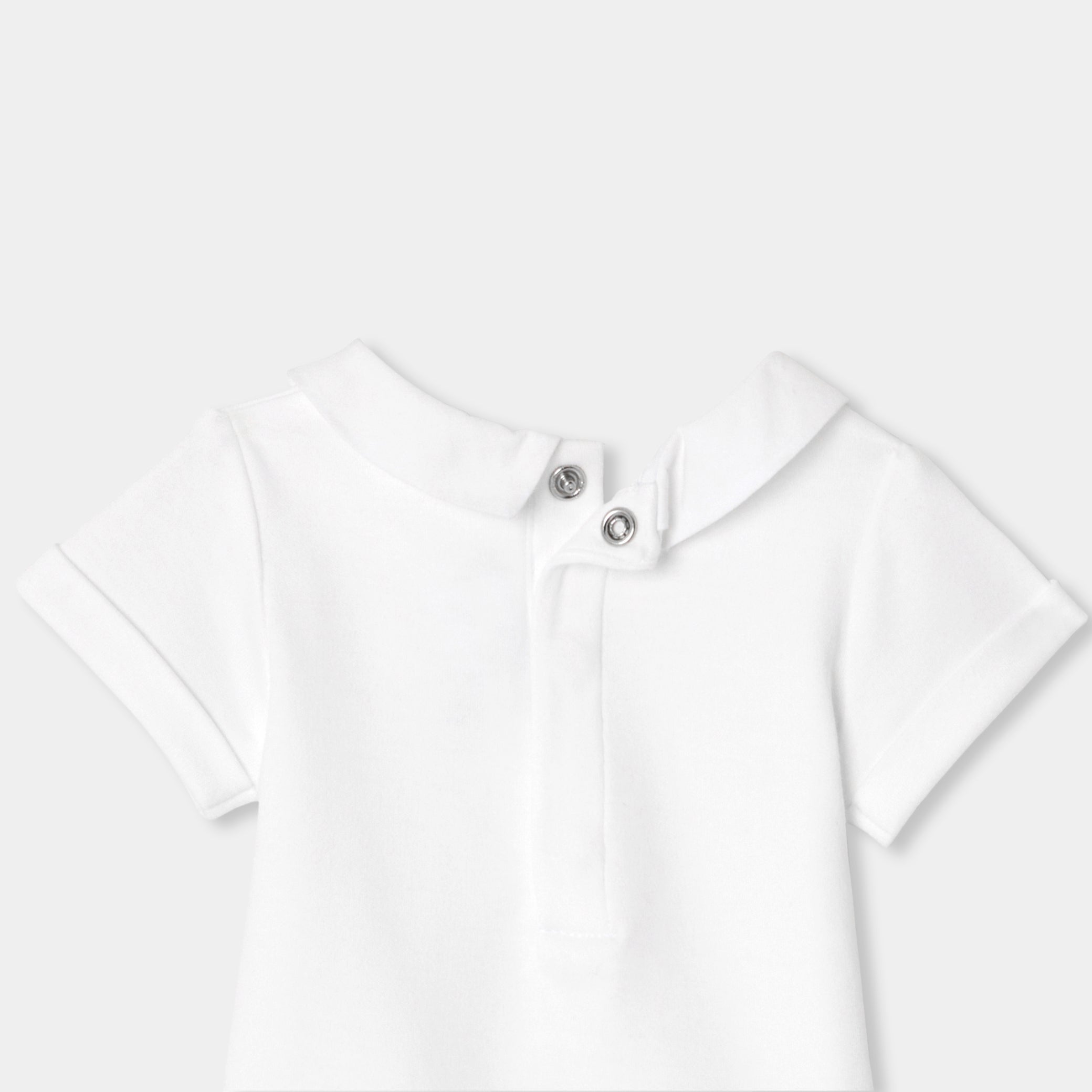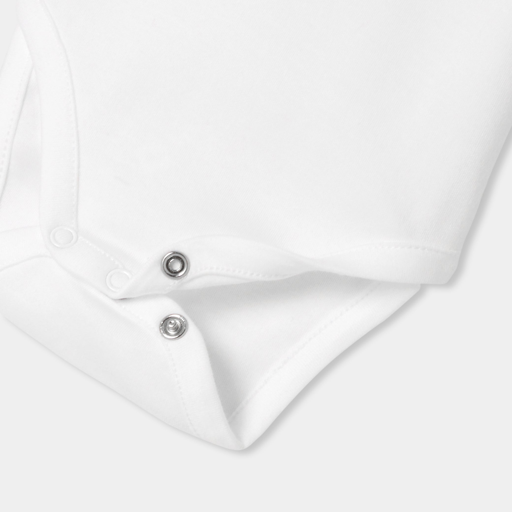 暑い季節も快適に過ごせる、インターロックコットン素材の半袖ボディスーツです。