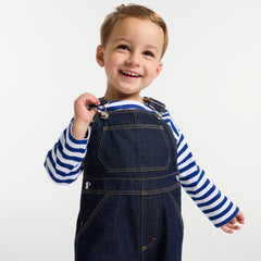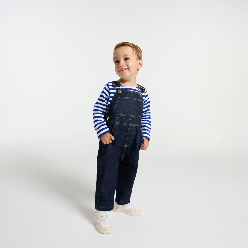 ワードローブに欠かせない、カジュアルで都会的なデニムサロペット。裏地付きで履き心地がよく、ボディスーツにも合わせやすい一着です。ロールアップしてスニーカーに合わせて、デイリーに。