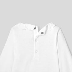 着心地よい日常着としてデザインされたボディスーツ。ペタルカラー(襟)がエレガント。シンプルなデザインで、カーディガンや足つきレギンスと合わせたコーディネートもおすすめです。