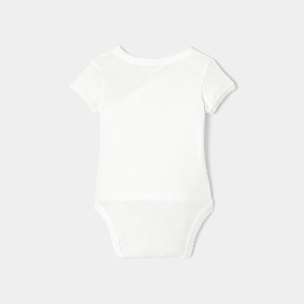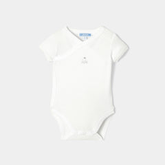 ご出産後からすぐにお使いいただける、柔らかで軽量なオーガニックコットン製の半袖ボディスーツ2着セット。前側面と股下のスナップボタンで開閉でき、着脱も安心・簡単。ブルマやサロペットに合わせてデイリーユースにぴったりです。