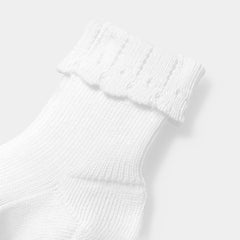 フォーマルな装いを仕上げてくれる、ミニマルでエレガントな靴下。ポインテールのあしらいがチャーミングで、Tバーシューズと合わせるのがおすすめです。