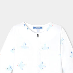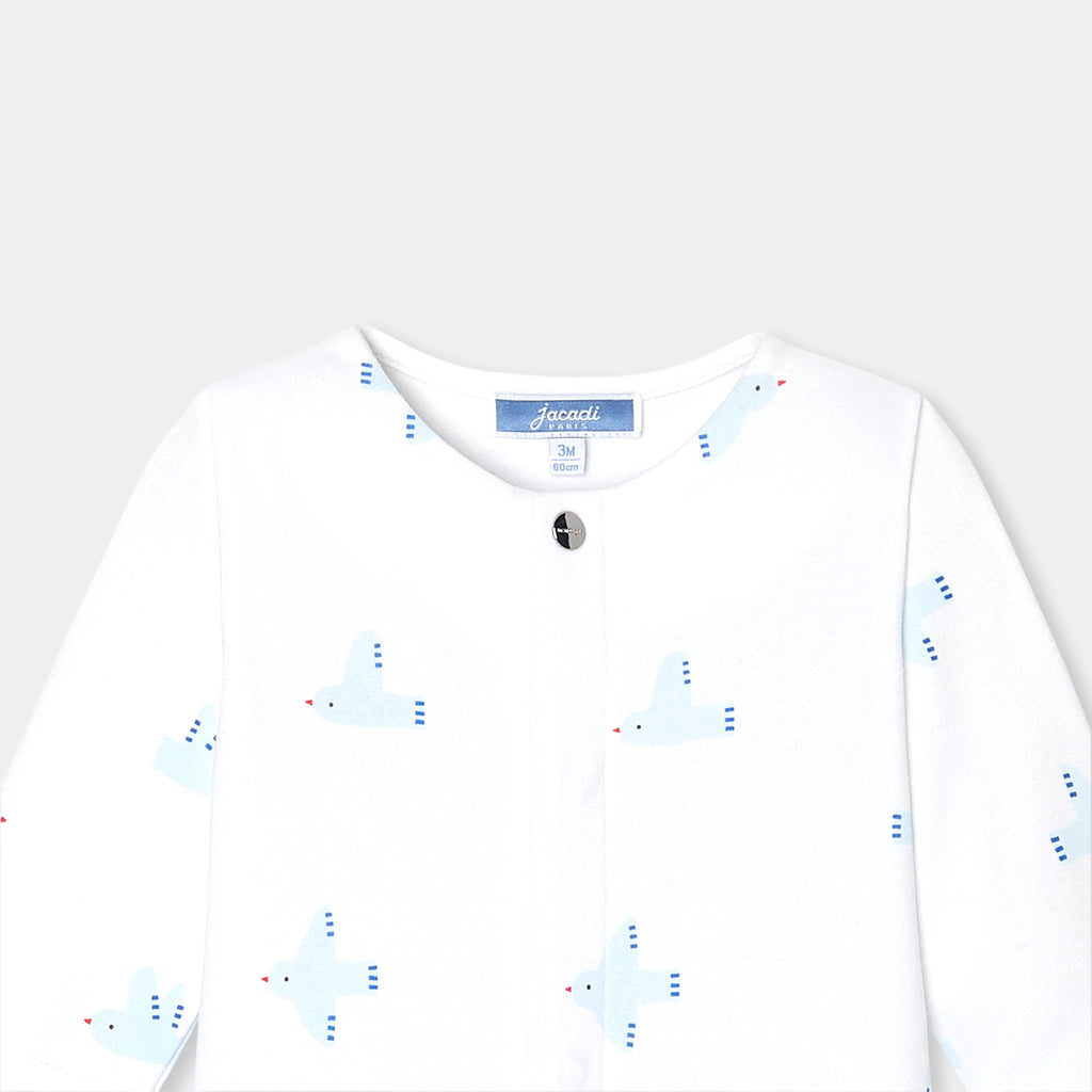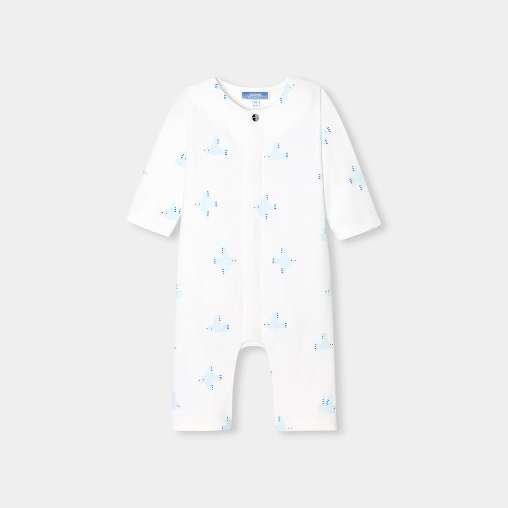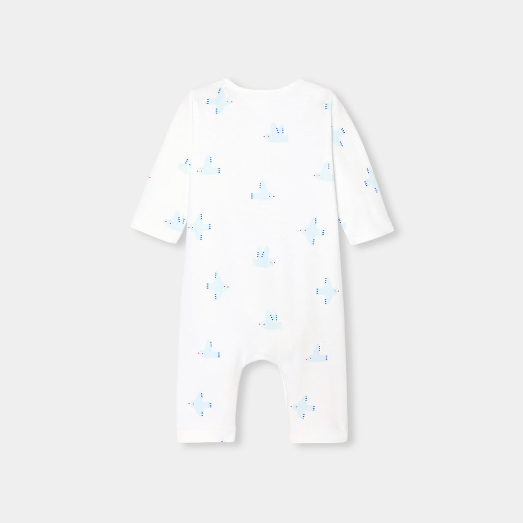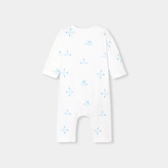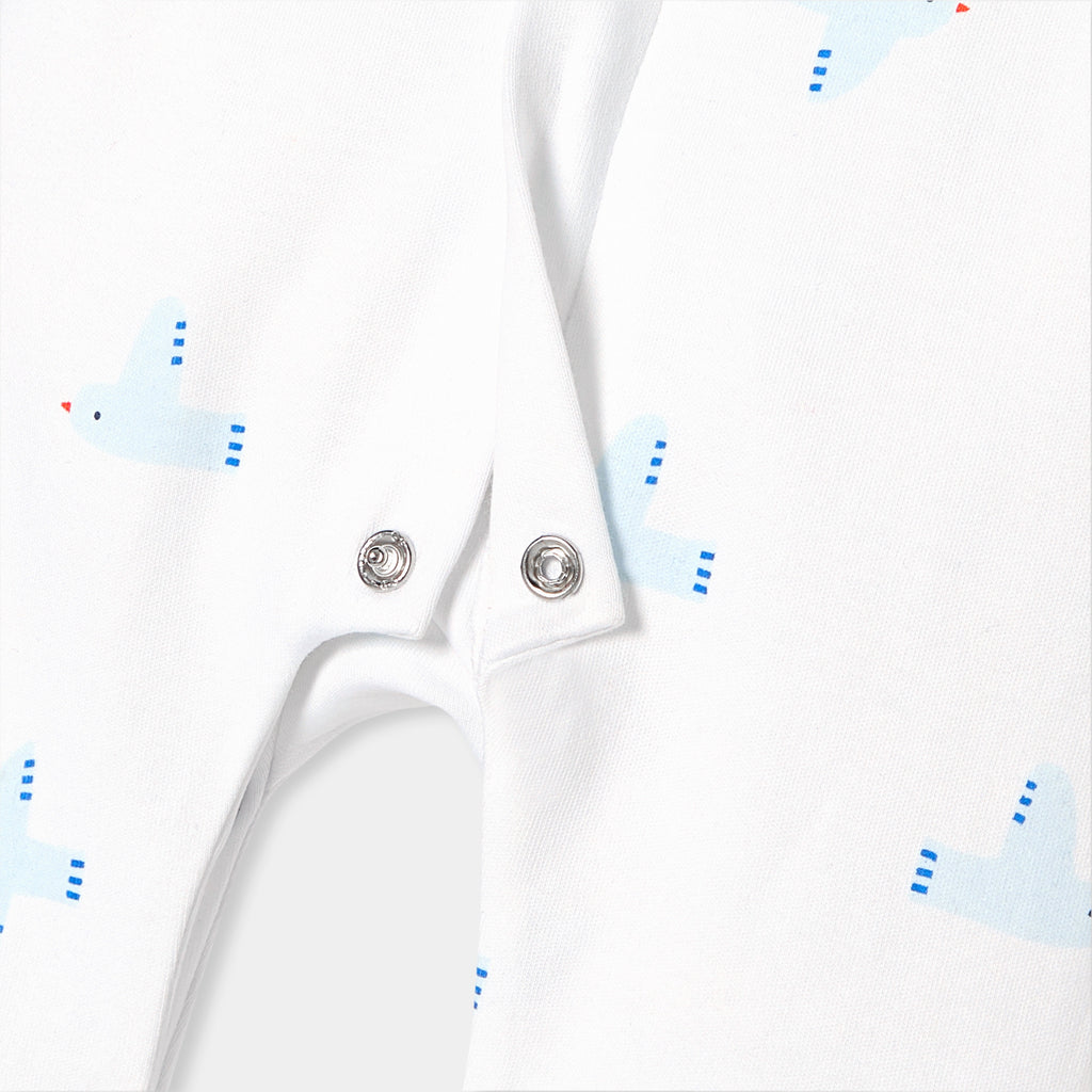 生まれたばかりの赤ちゃんのための柔らかで快適なロンパース。オーガニックインターロックコットンを使用した着心地の良い一着で、ファーストセットにぴったりのアイテムです。デイリーユースしやすく、可愛らしいプリントモチーフがポイントに。正面のスナップボタンで開閉でき、着脱も簡単です。襟付きのボディスーツと小さなブーティを合わせて。