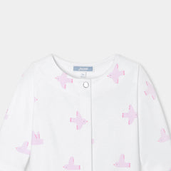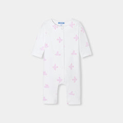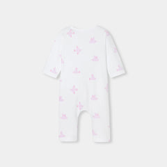 生まれたばかりの赤ちゃんのためにデザインされた、エレガンスとカジュアルさのバランスが絶妙なロンパース。柔らかでしなやかなコットンインターロックに可愛らしいモチーフをあしらった着心地の良い実用的な一着です。正面と股下のスナップボタンで開閉でき、着脱も簡単。ファーストセットに選んでみて。