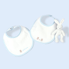 クマとフランス語の刺しゅうが施されたエレガントなスタイ2枚組みとキュートなウサギのぬいぐるみがセットになったデイリーユースしやすいベビーギフトです。出産祝いやお誕生日のギフトにもおすすめです。