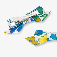 エレガントで実用的なヘアクリップ2個セット。お子さまの初めてのヘアアレンジにぴったりな、魅力的なヘアクリップです。リバティプリント(花柄)のリボンをあしらいました。細い髪もしっかりとまとめるクロコダイルクリップ式。