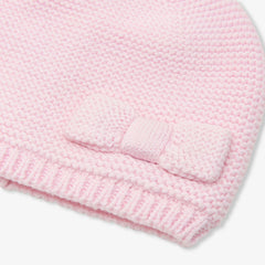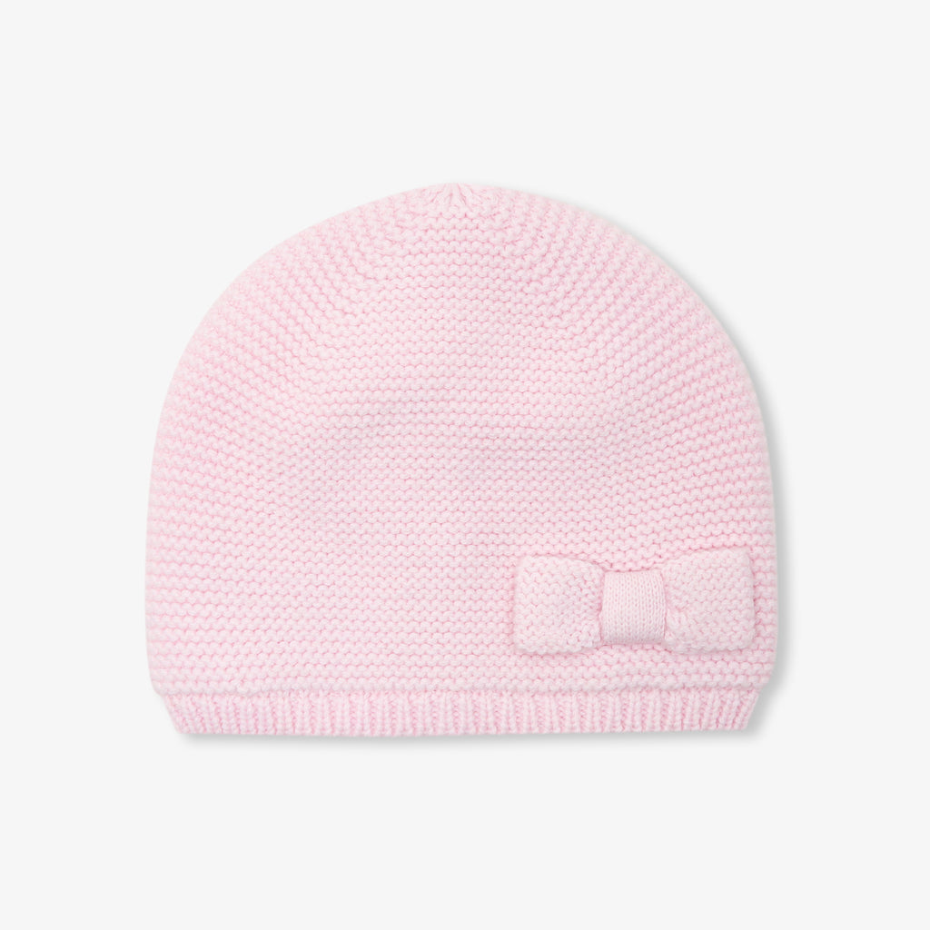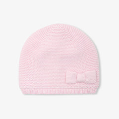 シックで正統派の魅力あふれる、コットンとカシミヤの帽子。サイドに平らなリボンが付いています。お揃いのスヌードやミトン手袋(別売り)と合わせて用意しておきたい、毎日の必需品です。