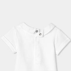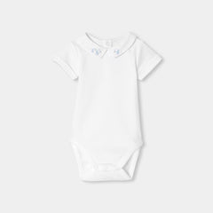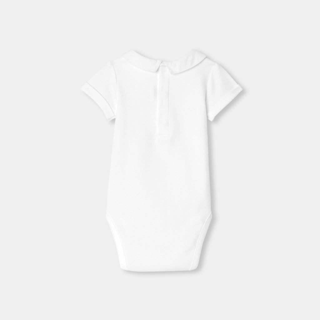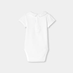 暑い季節も快適に過ごせる、インターロックコットン素材の半袖ボディスーツです。