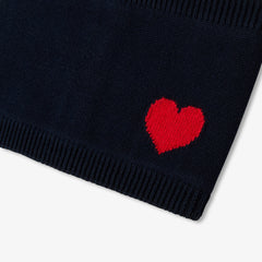 インターシャ織の赤いハートをあしらった、冬のワードローブに欠かせないスヌード。裏地はソフトでフルカバーのマイクロフリースです。シンプルでミニマルなデザインは、冬のどんなコーディネートにもぴったりです。