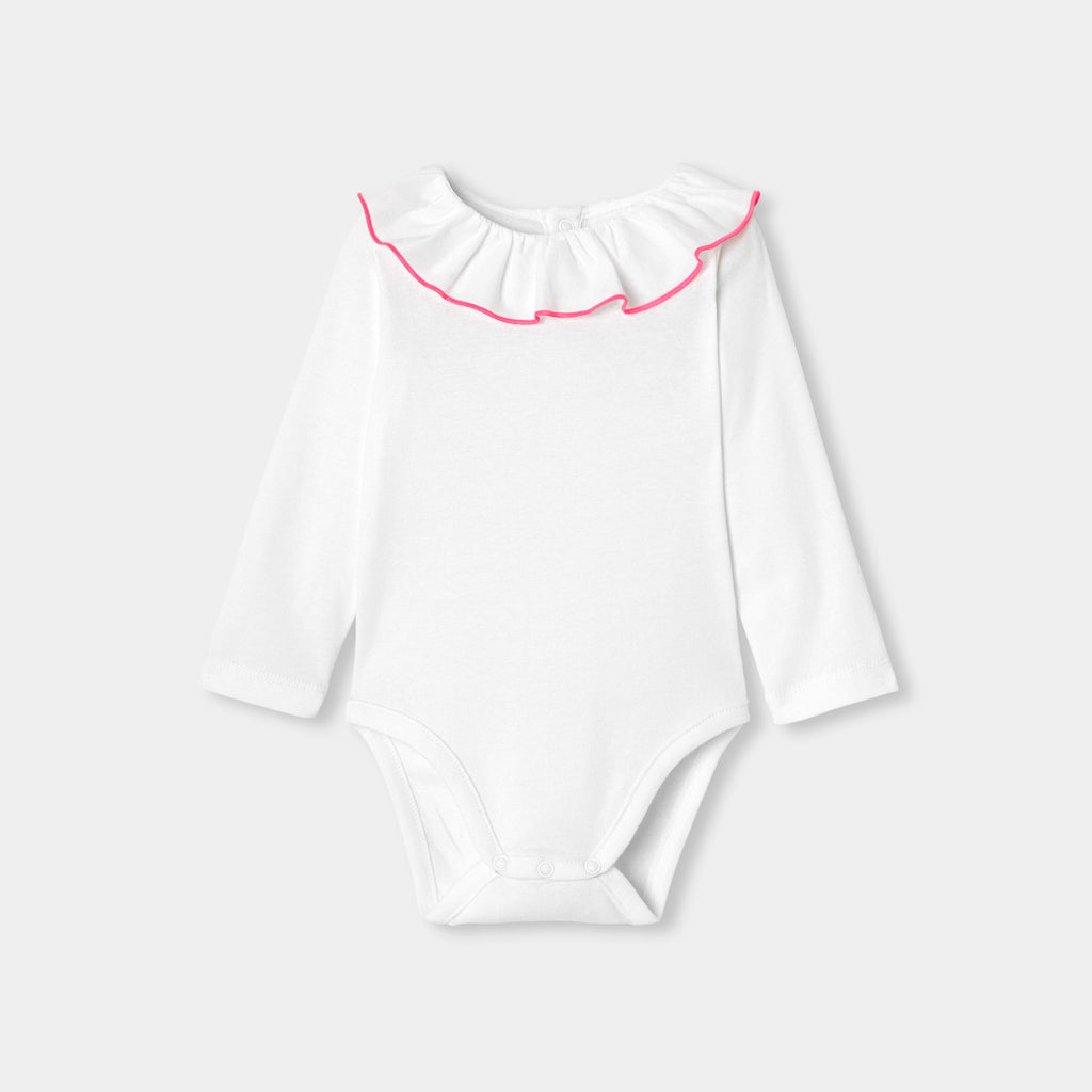 毎日のコーディネートに欠かせない、スタイリッシュでモダンなコットンボディスーツ。サテンの縁取りを施した襟が上品なアクセントの一枚。