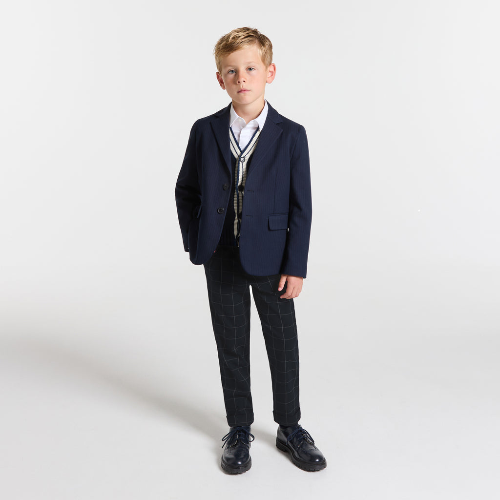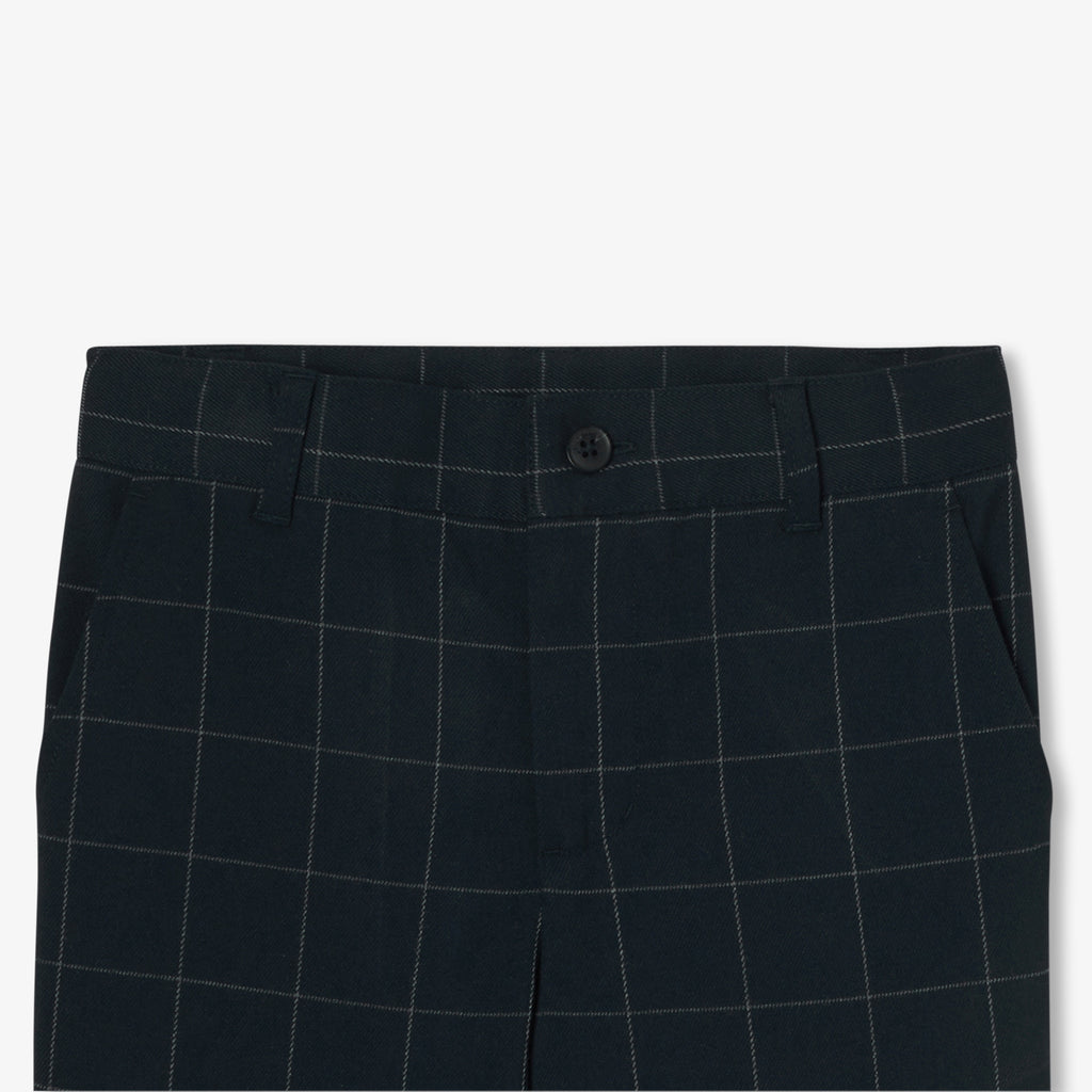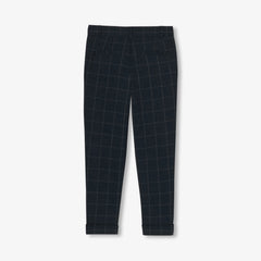 フランネル調生地のチェック柄ニットで仕立てた、洗練された雰囲気のパンツ。裾をロールアップしたデザインです。シャツやジャケット、ベストと合わせて楽しめる、暖かく着心地のよい一着です。洗練されたプレッピールックがホリデーシーズンを盛り上げます。
