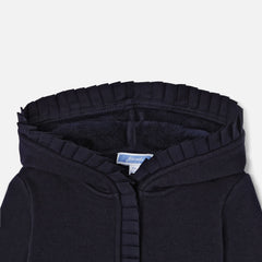 - 正面ファスナー・フードの縁にフリルのあしらい