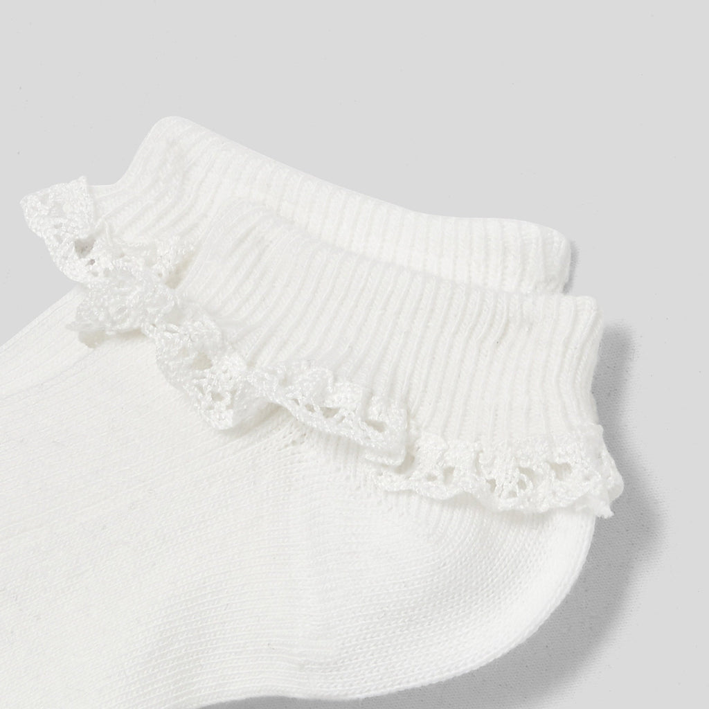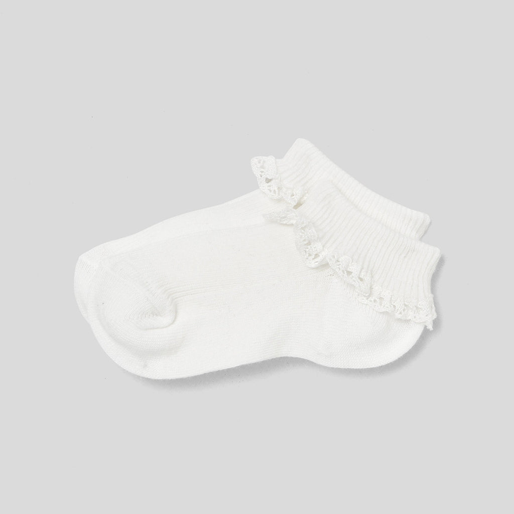 靴下製造を営む技術の高いフランス老舗のGuille(ギーユ)一家製造のこだわりの靴下。ロマンチックなレースの縁飾りがポイントに。