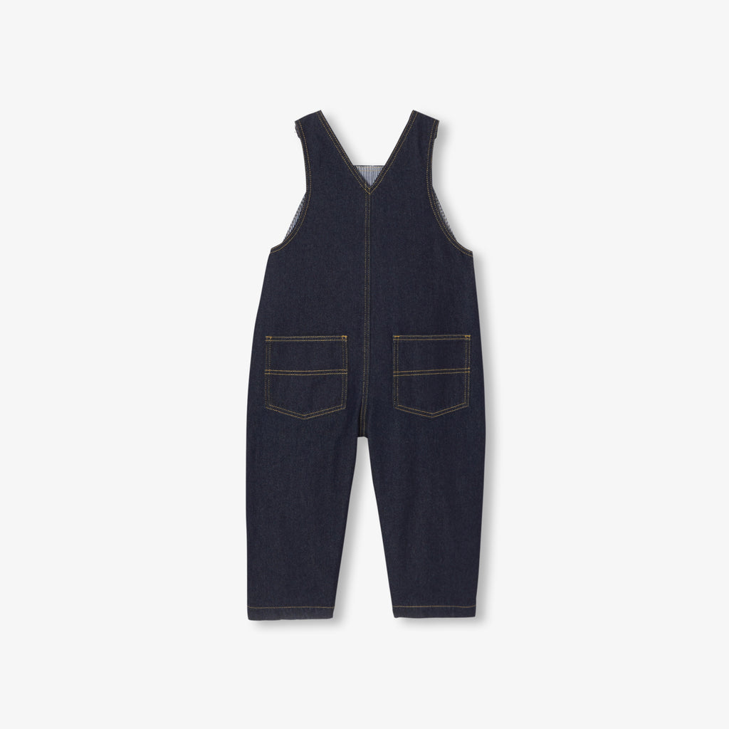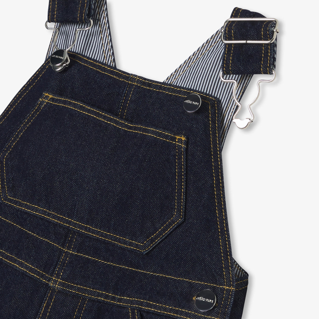 ワードローブに欠かせない、カジュアルで都会的なデニムサロペット。裏地付きで履き心地がよく、ボディスーツにも合わせやすい一着です。ロールアップしてスニーカーに合わせて、デイリーに。