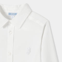 柔らかく着心地の良いオックスフォードコットン製の白シャツ。ワードローブの定番アイテムです。ツイルパンツとブレザーに合わせればフォーマルに、ジーンズと合わせればデイリーにカジュアルなシルエットに。ミニマルで万能な、エレガントな一着です。