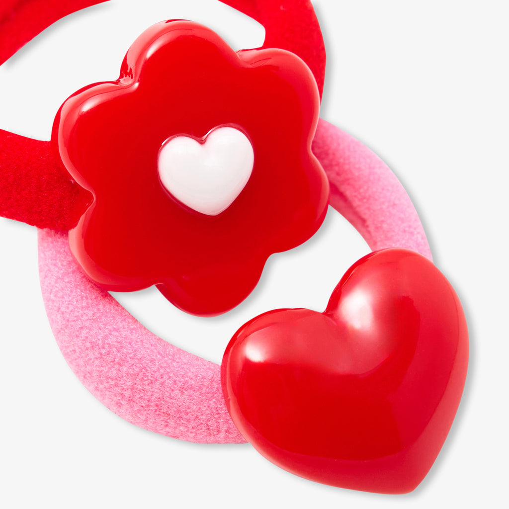 赤ちゃんの初めてのお団子をしっかりとまとめてくれる、ヘアゴム2個セット。ハートと花が可愛らしく、ヘアスタイルにオリジナリティを与えてくれます。