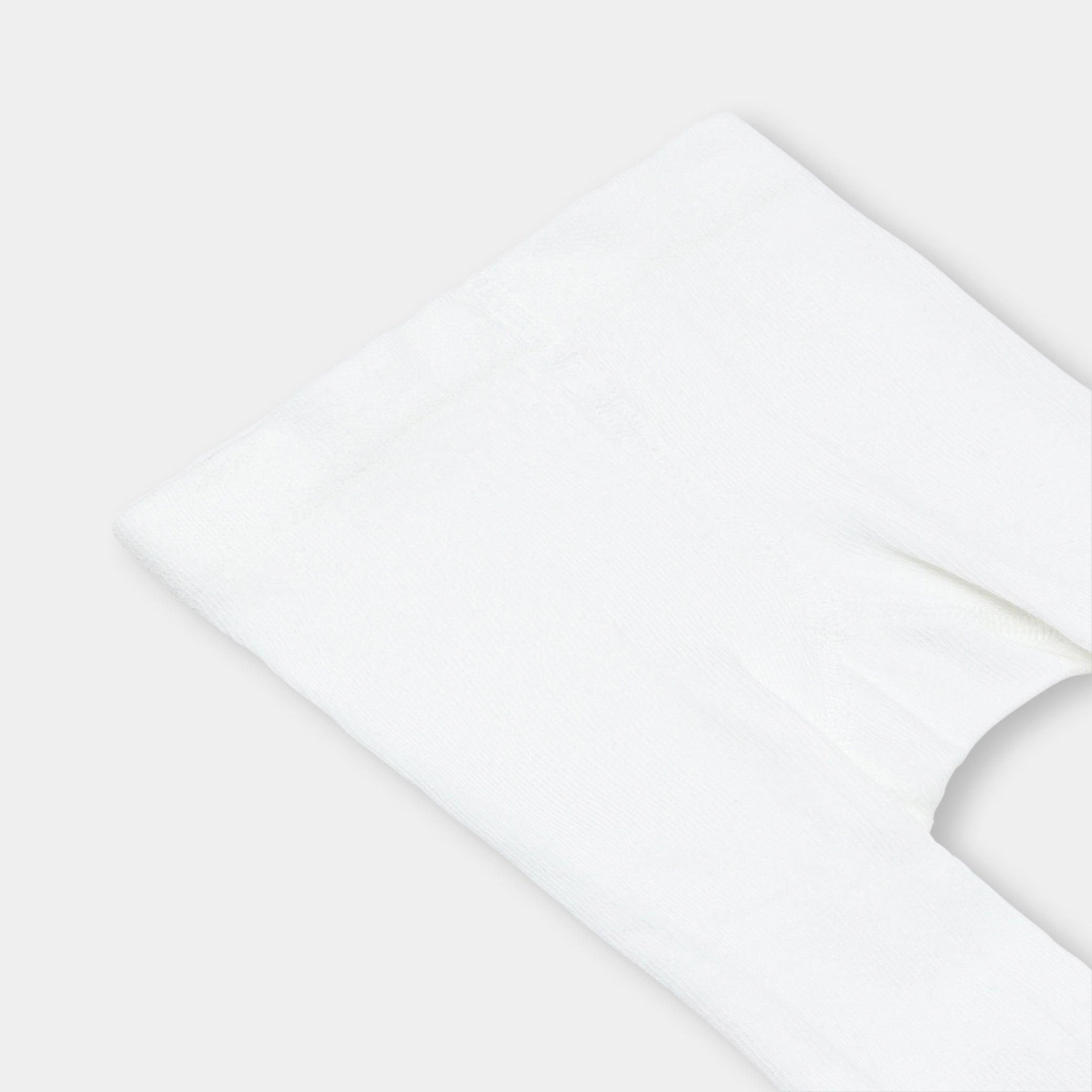 足首に可愛いリバティプリント(花柄)のリボンをあしらったタイツ。お子さまのコーディネートをエレガントにしてくれます。柔らかくて履きやすく、秋冬のワードローブには欠かせません。