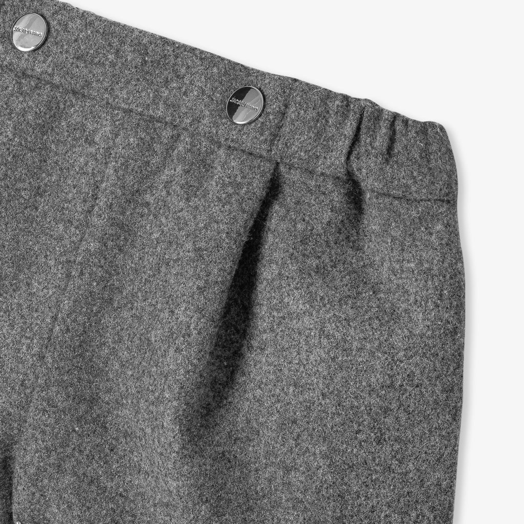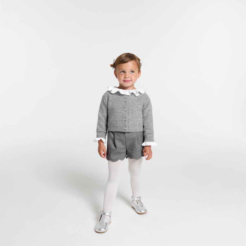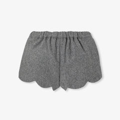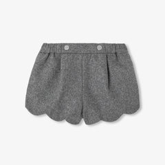 ミニマムなカットとモダンなディテールのショートパンツ。スカラップ裾とシルバーのダブルスナップボタンがレトロシックなアクセントに。柔らかくしなやかなフランネル調生地がタイムレスな魅力を引き立てる一着です。長袖ボディスーツとフリースカーディガンに合わせればデイリーに、飾りボタンのカーディガンに合わせればホリデーシーズンの華やかな装いに。