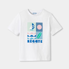 色彩と遊び心あふれるデザインで、明るい季節の訪れを楽しむ半袖Tシャツ。柔らかなコットンジャージー素材を使用しています。着心地の良いストレートシルエット。レガッタをモチーフにしたデザインが、夏らしい海辺の雰囲気を醸し出しています。遊びや散歩、海辺での家族との時間にぴったりのマストアイテムです。