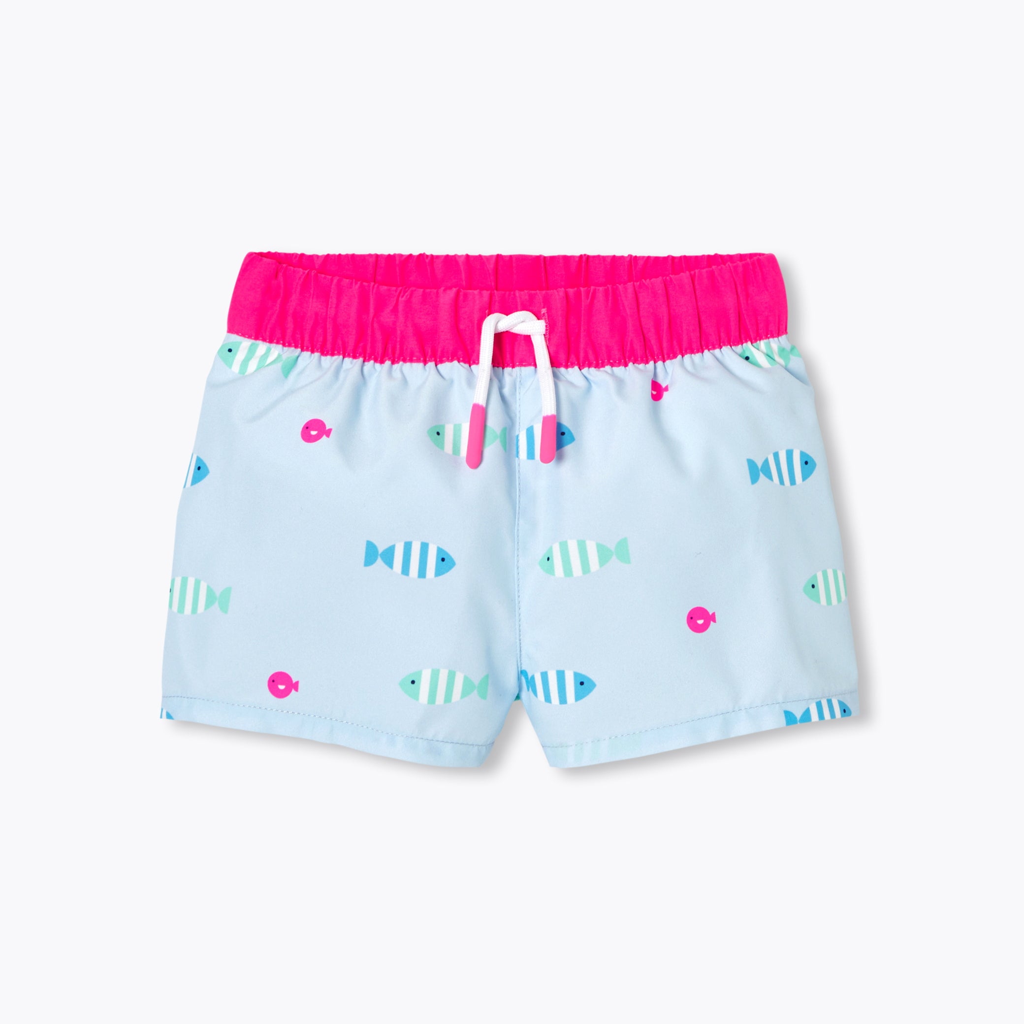 鮮やかなカラーの魚やストライプ柄のイワシのモチーフが、水遊びの装いに遊び心をプラス。シーンに合わせて使い分けたいアイテムです。