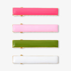 メタルヘアクリップ4個セット。ウェアコレクションに合わせた色を揃えました。クリップ式で付け外しも簡単。細い髪もしっかりと固定してくれます。