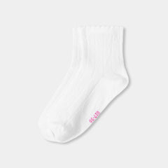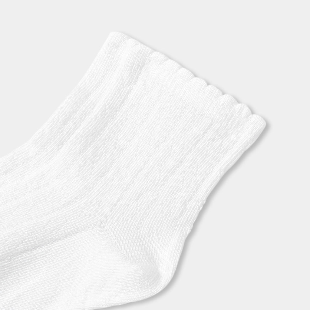 繊細でふんわりとした、ポインテール編みの靴下。ショートパンツやスカートに合わせ、Tバーシューズやメリージェーンを履けば、春夏の装いに遊び心が加わります。
